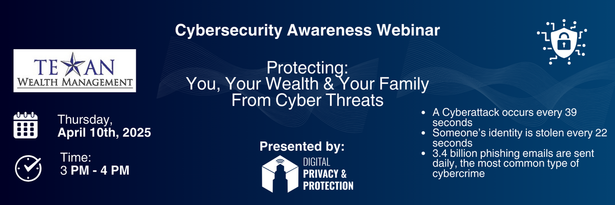Cybercrime is now larger than the sale of illegal drugs worldwide, and poses an imminent threat to you, your wealth, and your family. Mark Hurley, CEO of Digital Privacy and Protection will provide a 30-minute presentation followed by questions. It will cover: